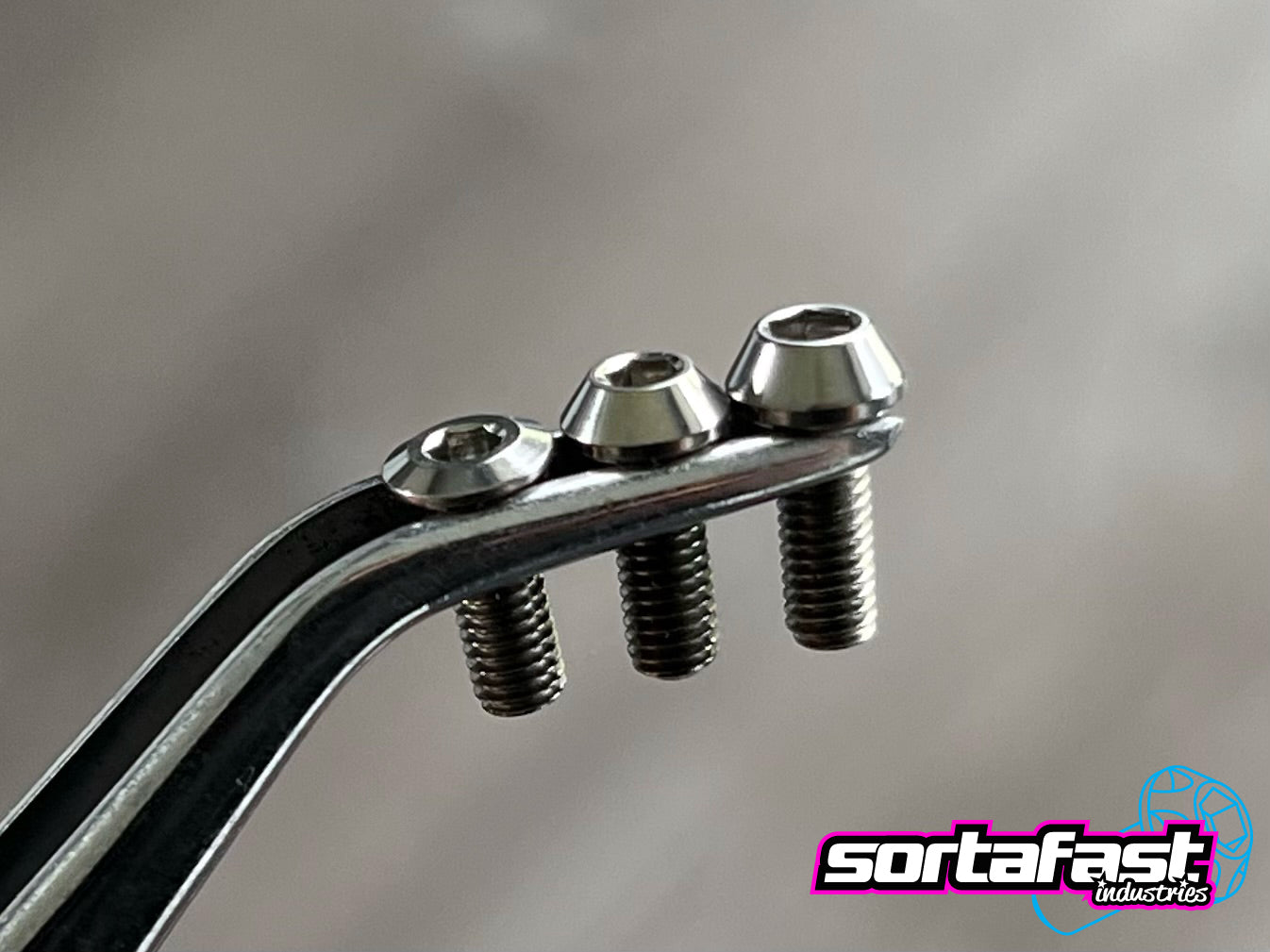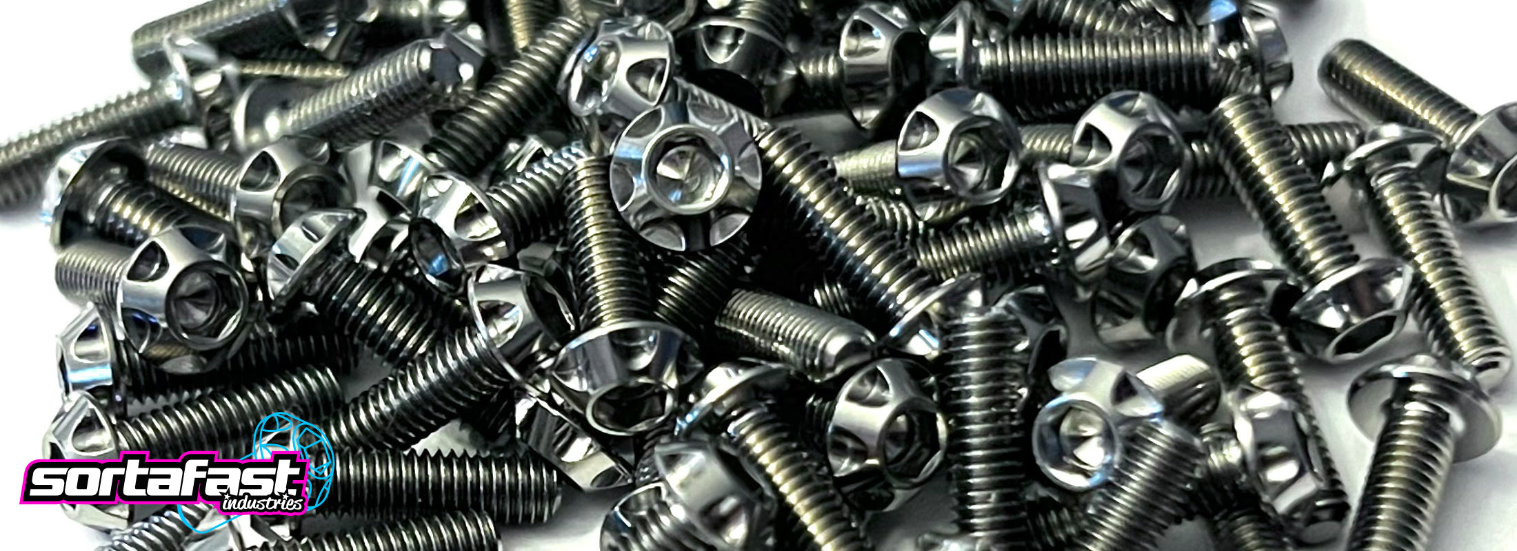 No matter the application, Sortafast has you covered. Choose from (left to right) Lowrider, Button or Cap head screws. Sortafast titanium screws will add that extra flair and performance you’re looking for.