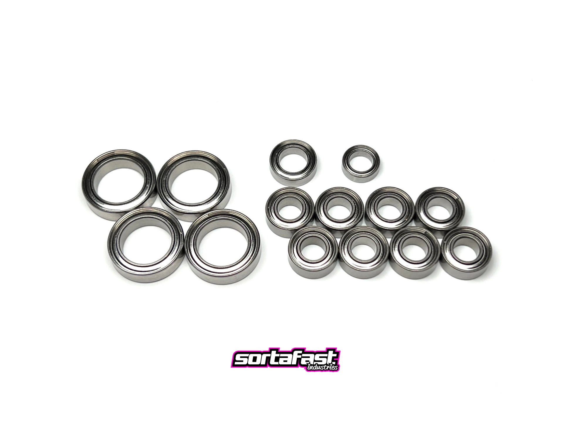 •Drivetrain bearing kit includes 14 bearings total. 4 diff/spool bearings, 8 hub bearings and 2 center pulley bearings. Steering rack, sway bar, internal diff and belt tensioner bearings are not included.